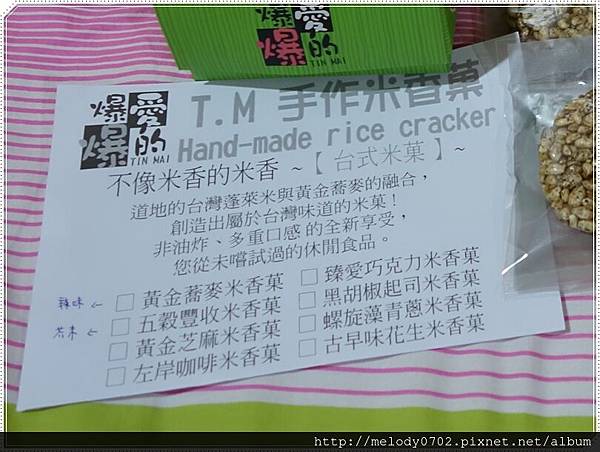 話說「T.M 手作爆米香」口味實在太豐富,要我一一陳述還真有點詞窮,深怕話一說出,卻無法到將它的創新美味形容到"味",就請想品嚐的客倌們自個兒來下單品嚐吧!