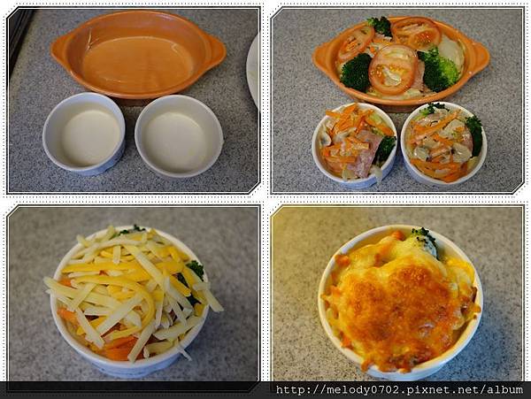 創作起源:焗烤一直是我最愛的料理方式之一,尤其最愛搭配白醬和蔬菜,外出用餐倘若餐館有這道料理,我幾乎是必點無疑,在家自備又能多加點蔬菜和起司絲,只要有了白醬,一切都好解決。