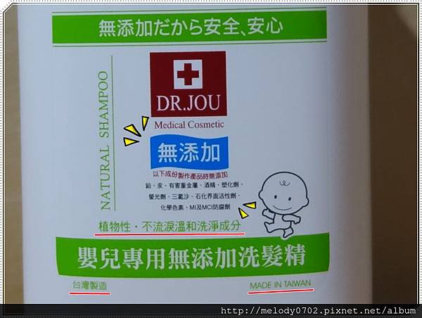 不僅無添加眾多有害化學成分,選用的植物性配方,能溫和洗淨頭髮且不流淚。從頭到尾堅持台灣製造的精神,讓我更放心使用在寶貝身上。