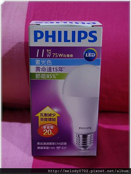 上個月回娘家時,眼尖的我一進門馬上驚覺家裡的採光突然明亮許多,一問之下才得知,家人經由替新家裝修的設計師建議,不僅新家就連目前居住的處所也都改用LED燈泡,據說不僅節能省電,亮度也大幅增加。偏好白光的我趁著特力屋年節特惠活動,二話不說便添購兩組讓我微笑的「飛利浦LED燈泡11W 三入包 白光」。