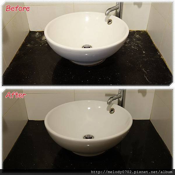 來仔細比對一下,洗手台清潔前後的差異度有多大。