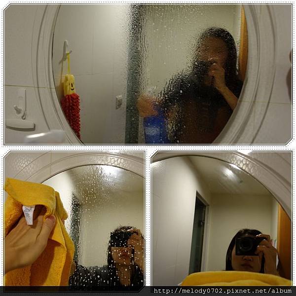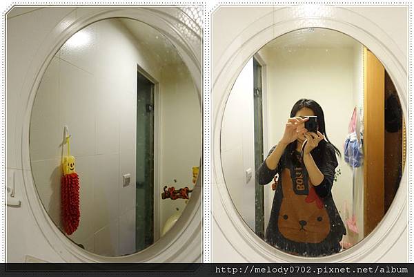瞧瞧每日必照的鏡子傷痕累累,處處可見灰塵、水痕、指紋的蹤跡,有了深色衣服當背景,讓我看得更清楚,反倒快看不清楚自己。