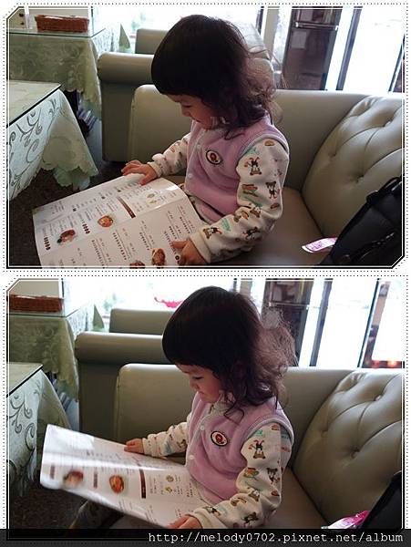 不到11點,因逢Bryan當日要上班,習慣午餐提早享用,當日店家對外營業時間未到,我們在店家許可下,先行入店休憩一會兒後再行點餐。嘉嘉認真看著菜單,小小服務員的姿態,不時詢問我們要點甚麼呢?恩~是可以讓她開始體驗小小服務員一職的樂趣了。