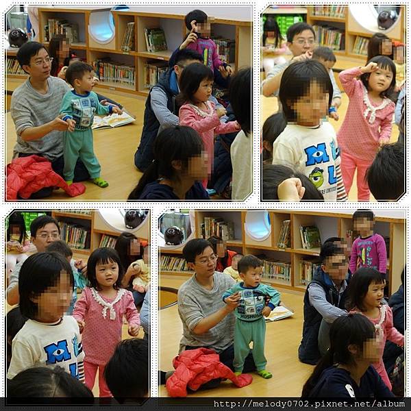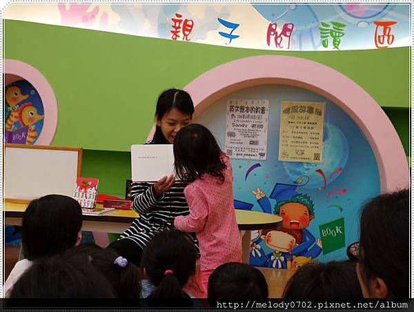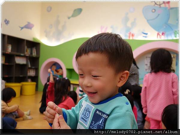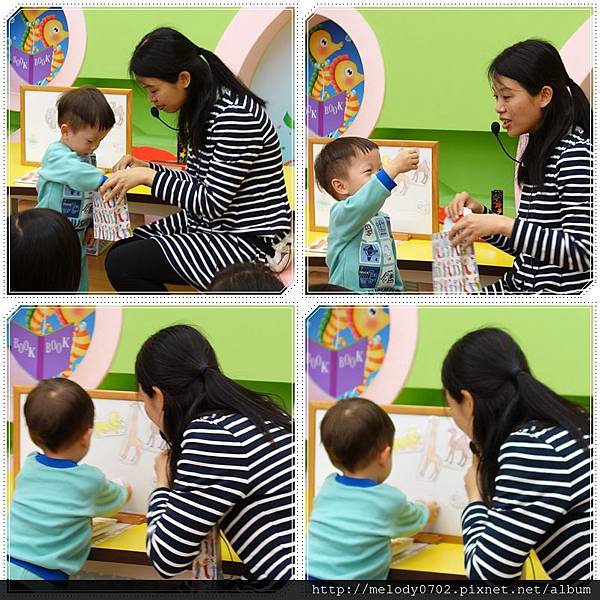 也許有了上周的經驗後,這次聽故事的過程中,Janet既主動又踴躍,想上台表演的慾望增強,加上很想要獲得小小貼紙的榮譽感作祟吧!