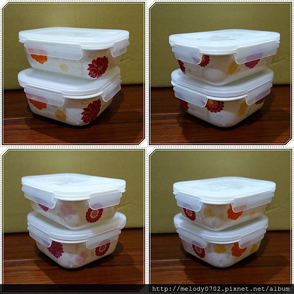 容器本體四面各有著不同樣式的山茶花圖案,看起來既高雅又細緻,暖色系的色調讓人感覺很溫馨,料理後即可直接上桌,無須額外盛裝至另一個碗盤。