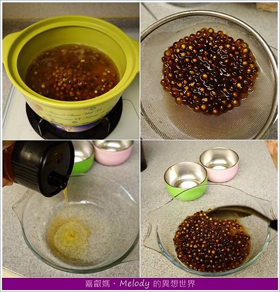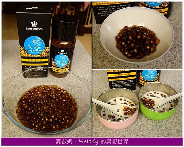 飽滿有彈性的珍珠,浸泡過台灣蜂巢蜜後,口感更細膩,品嚐後唇齒留香,甜而不膩,為人母後首次烹煮珍珠,還蠻有成就感的。