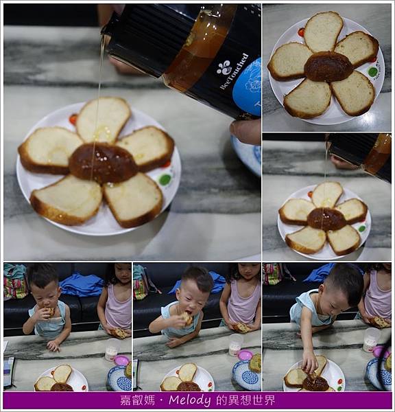 前陣子兩姊弟愛上沾醬,深怕市售沾醬口味偏重,養大他們的胃口並影響健康,故一直被我勸說和阻止,據說蜂蜜有豐富的營養物質,還有養顏美容之效,而「蜜蜂工坊BeeTouched 台灣蜂巢蜜」採用蜜種較單一的二期蜂蜜,口感較為滑順,通過歐盟最高檢驗標準,保證100%純蜂蜜,值得我信賴,更放心讓兩姊弟好好品嚐它的美味。