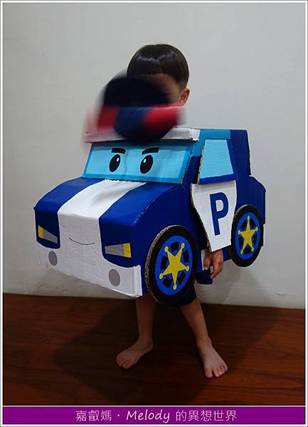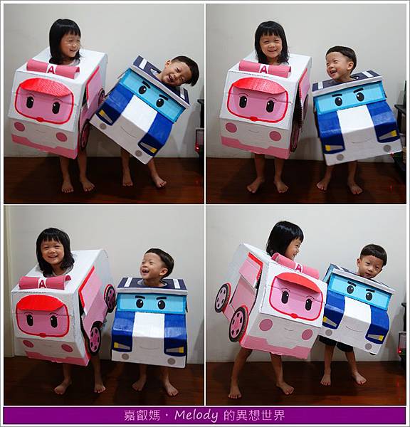 週六早上,兩姊弟還有才藝課,出發前先行定裝,心想當下倘若他們無法久穿紙箱製作的角色裝扮,至少也有類角色扮演的服裝撐著場面。