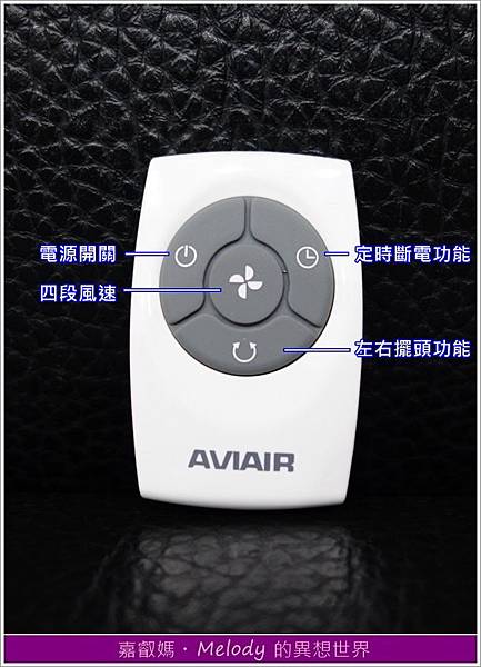 可控制的項目有:電源開關/四段風速、四段定時斷電設計以及左右擺頭功能,