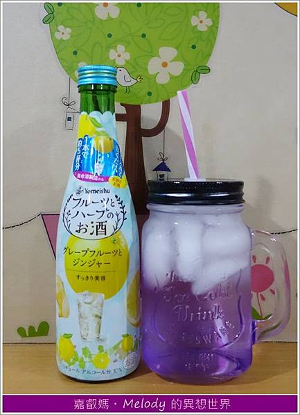 顏色透明如水,無添加色素,保有水果酒原有的本色,不添加防腐劑,故開瓶後建議冷藏保存並儘快飲用。開瓶後,便倒入玻璃瓶中,隱約可聞到葡萄柚的果香味,很有夏天的味道。