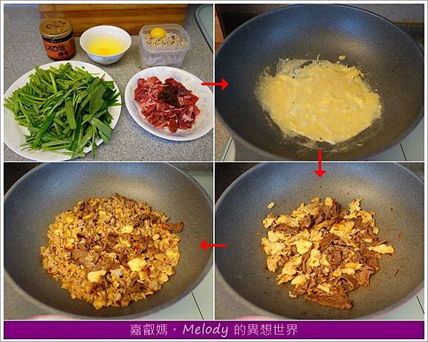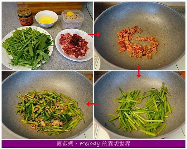 另起一熱鍋,下牛肉拌炒至八分熟後起鍋備用,接著加入空心菜梗以及少許水煮至微軟(似水煮),再加入菜葉與牛肉條,也可視自己喜好添加xo醬或少許鹽巴,拌炒均勻就是一道xo醬牛肉炒空心菜。