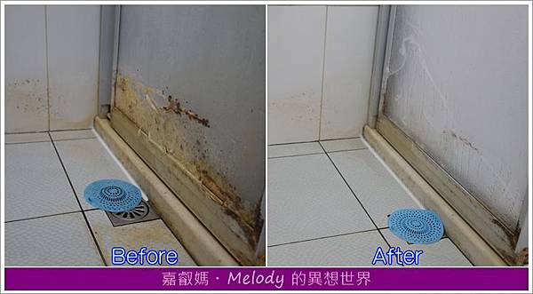 經家事正妹清潔後,惱人的黃垢、霉斑已去除了大半,
