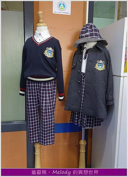 服務台一旁陳列著冬季學院風的制服,學校櫃台人員告知這是近期改版過的款式,Melody看了都好想各買一套男女制服給兩姊弟穿。(走進校園後,看到真人實穿,更讓我興奮不已,這年紀的小孩穿制服怎麼這樣可愛又俏皮)