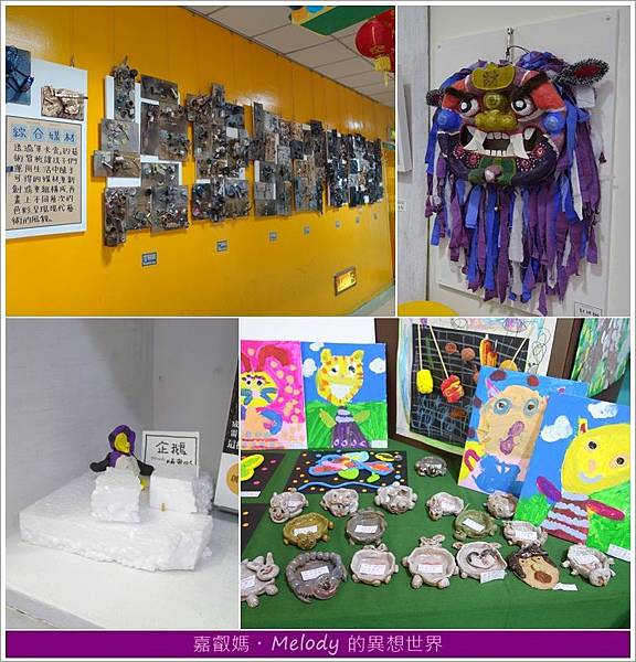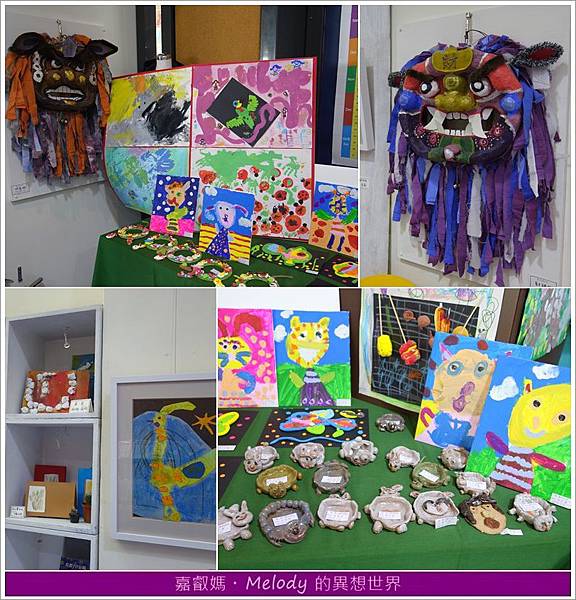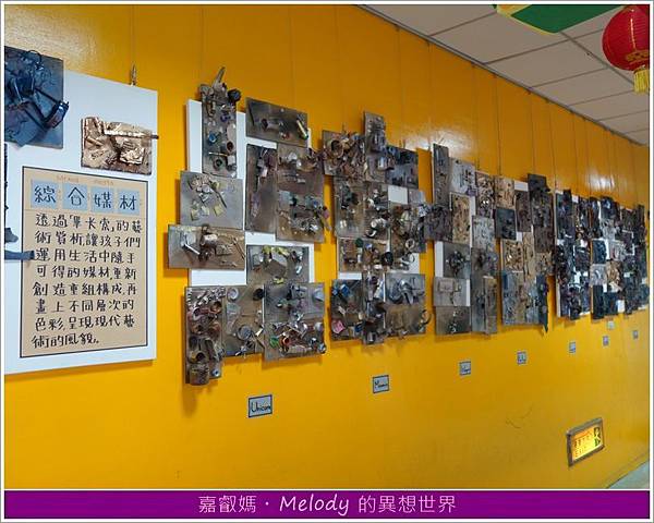 此外,某面牆壁上陳列著孩子們利用綜合媒材組合的藝術作品,給人一種別樹一格的藝術氣息。