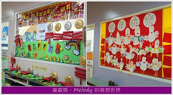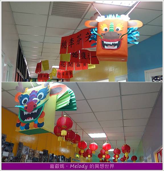 繼續跟著Glory往二樓大班孩子們的教室前進,這才發現改裝後的教室有著百貨公司商店街的裝潢設計,彷彿置身於電影世界裡的魔法學院。走廊空間採光明亮,往上一瞧,圓弧造型的天花板設計,有著藍天白雲的巧思,每間教室外觀也都有著各式各樣的主題特色,像是Magical Barbershop、Rainbow Candy Garden、Dr. Owl Book Store、Peter Pan Post Office等主題外觀,年節將近,教室外處處可見孩子們親手製作的過年作品,替教室增添溫馨的年節氣氛。