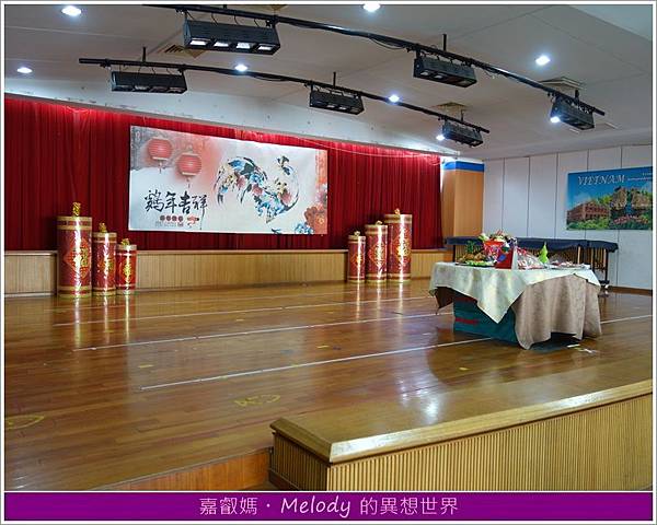 再往前走是大禮堂,節慶表演的場所。(Glory說每月周四早上學校也會在這邊舉行慶生活動及文化主題教學,這個時候是全校師生集會及開放家長一同共襄盛舉的盛會呢!)