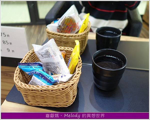 隨後,立即送上茶水和點心,就以往Melody單次燙、染或護的經驗,少說都得花上一小時以上的時間,像這樣店家主動提供暫時解飢的茶點,還真是大心啊!