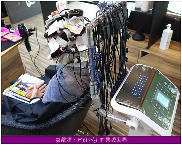 依Melody以往燙髮的經驗,這次燙髮應該是採用熱塑燙,捲子和頭皮間都有隔著熱塑燙專用的羊毛氈,不僅可隔熱、避免燙傷,還能吸收多餘的藥水。
