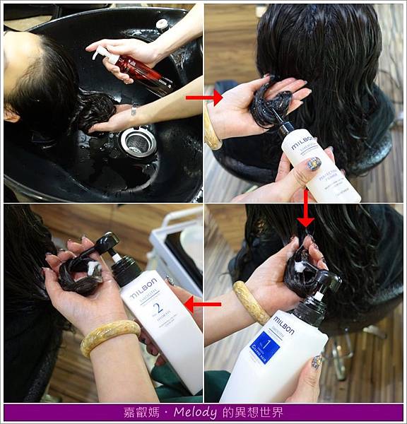 此次燙後護髮是採用日本原裝哥德式護髮產品,正名是Milbon絲柔修護系列組合。此款護髮系列組合適合給追求光澤與滑順質感,並在意手觸感的人,其修護成分能溫柔包覆頭髮表面,提升毛髮內密度,讓整體髮絲更顯光澤絲滑。