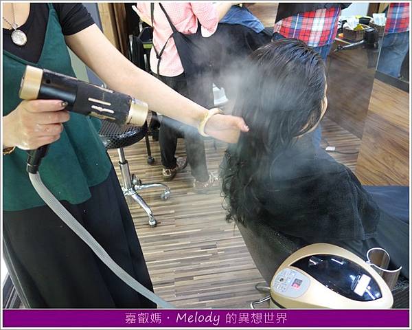視情況會使用熱烘來軟化頭髮,整個過程中,不時可見Vicky上前觀察髮質狀況,並詢問是否有任何不適感,待時機成熟後,再次沖水。