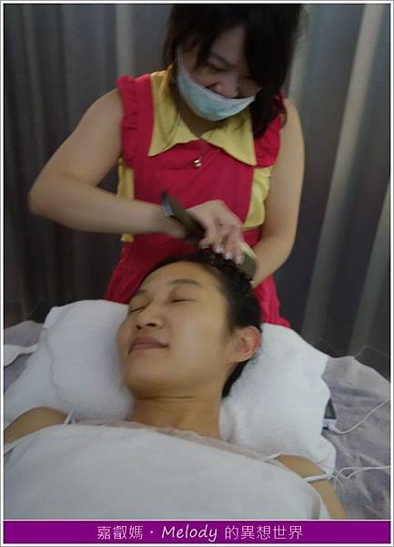 熱敷的同時,美胸師為了讓Melody更放鬆,特地選用薰衣草精油搭配按摩工具幫我按摩頭皮,讓人覺得好大心~