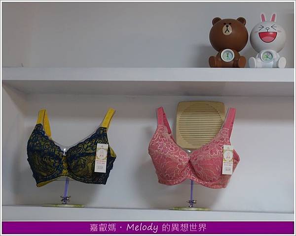 「菲玲」店內陳列著不少「美胸塑型衣」,像是這款「驕傲小姐」,有粉色和藍色兩款。