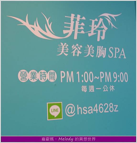 首次前往體驗專業美胸,雖然已為人母,依舊有些擔心又害怕,大門上清楚標示著"男賓止步",著實讓我放心不少。