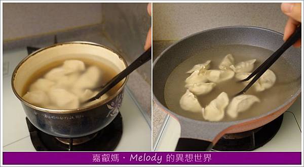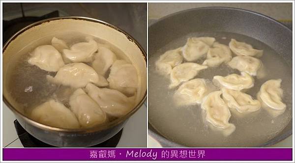 如圖所見,水餃兩邊鼓起後,續煮2~3分鐘,即可上桌囉!不過Melody深怕冷凍內餡不易熟透,續煮5分鐘左右再盛盤。